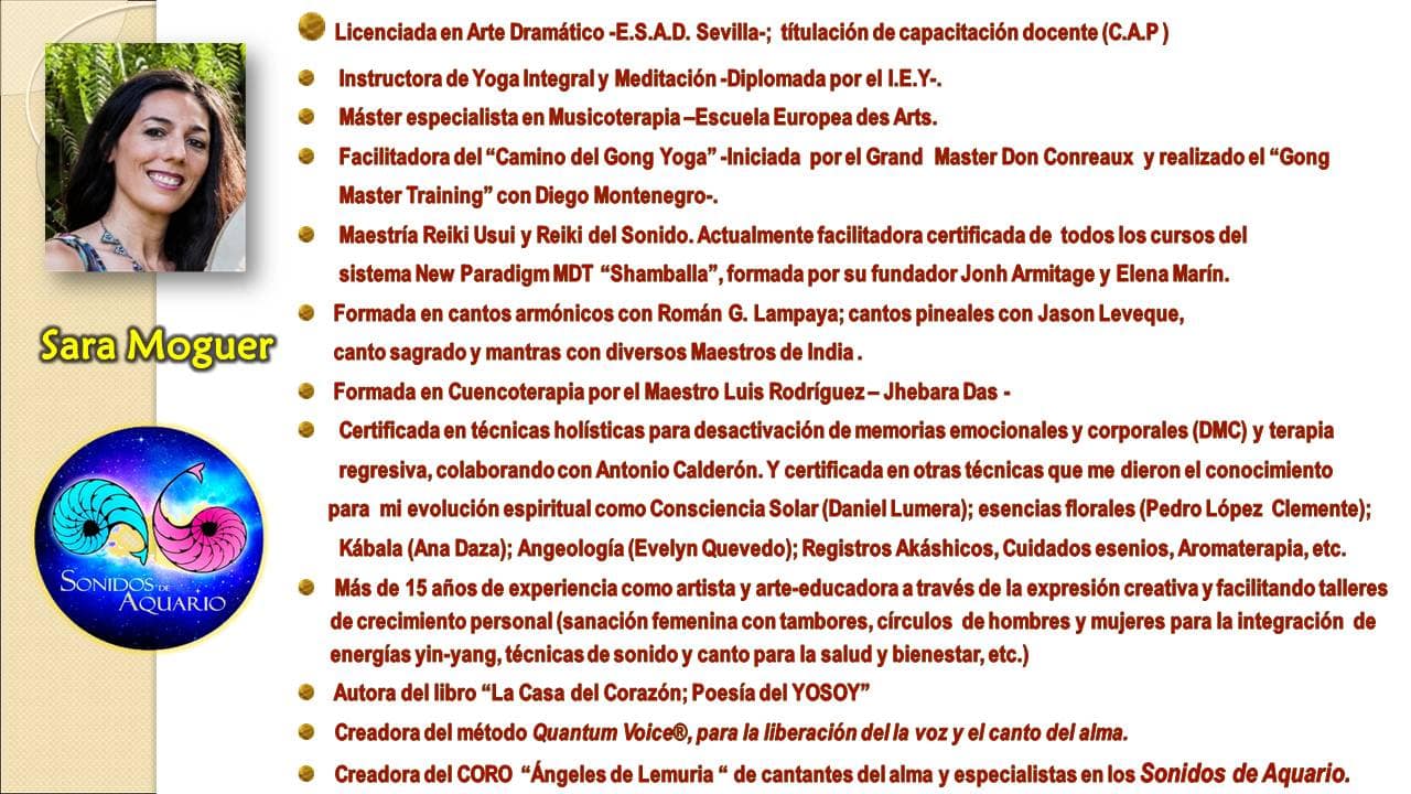 Vi cómo se reconciliaban mi pasado y mi presente cuando volví a subirme a un escenario a través de los sonidos chamánicos de los gongs y de nuestras voces cantando las canciones que anunciaban un nuevo arte, una nueva tierra. El «nuevo espectáculo para la humanidad» incluía a artistas que están despertando a una nueva consciencia, facilitando sanación, armonía y luz a todos los espectadores. Como bien dice Jodorowsky, «solo has de adquirir el poder de ayudar. El arte que no sirve para sanar no es arte». Así llegué al epicentro de mi SENTIDO, la comprensión de mi propósito. El teatro, el canto, el nuevo espectáculo para mi recuperaba el valor de lo SAGRADO, algo que había olvidado. Es TEATRO SAGRADO, ES CANTO SAGRADO, ES SONIDO SAGRADO. En mi camino esta nueva integración de mi ser, llegó a través del Camino de la Consciencia GONG, que unificó todas mis piezas en una sóla y donde estos maravillosos intrumentos sirven al propósito de UNIDAD, nos conectan con el latido universal del «GONG-OM» de nuestro corazón. A todos los que nos gusta actuar en público y transmitir a través del Arte, y nuestra propia Voz, ahora tenemos la oportunidad de seguir avanzando en la espiral ascendente de la consciencia mediante una nueva forma de espectáculo y arte.