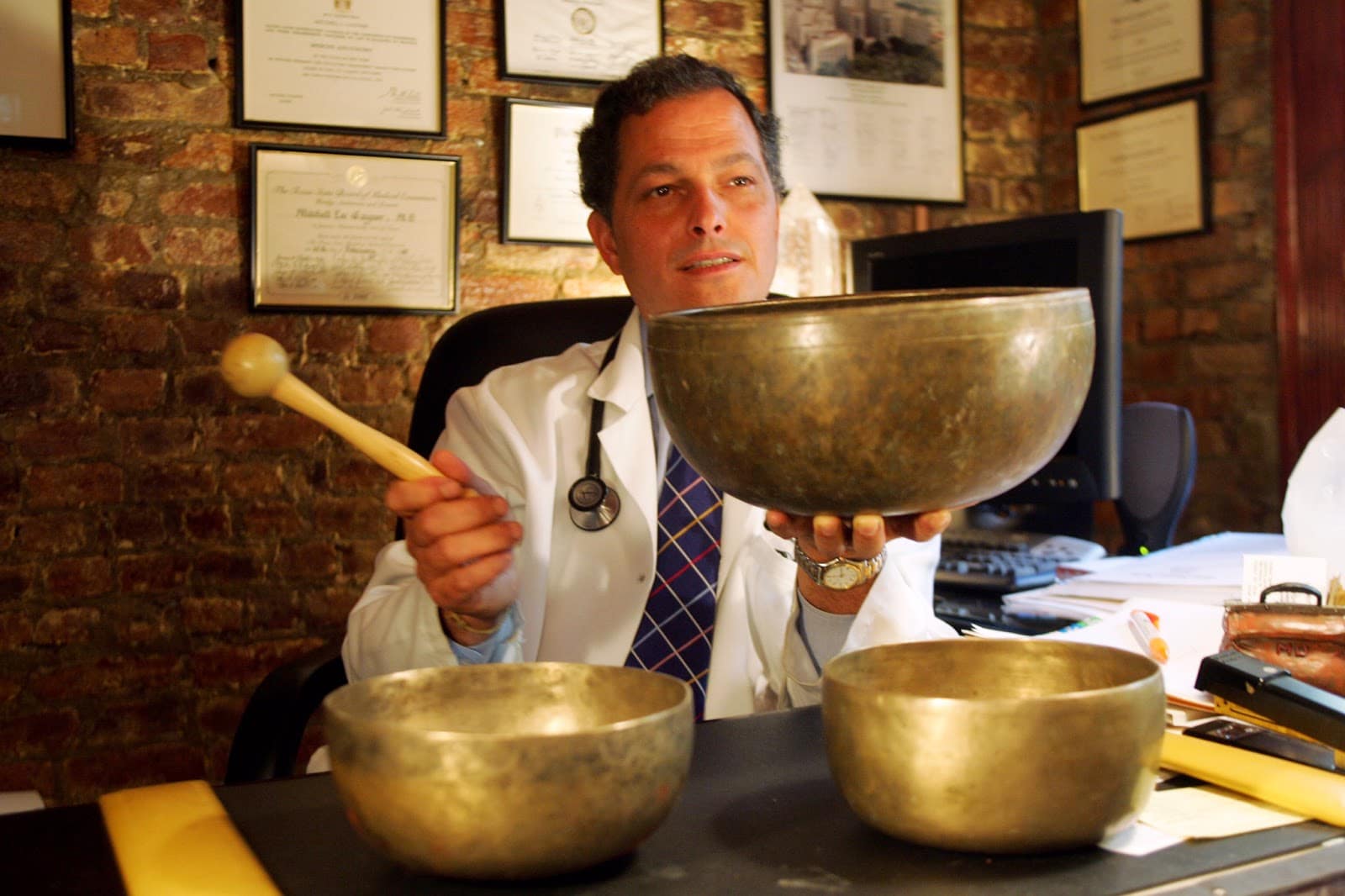 Se dice que, cada vez que entraba un paciente en su consulta, lo primero que hacía el Doctor Gaynor, si lo veía en un estado receptivo, era colocarle un cuenco de cristal de cuarzo en sus manos. Después de tocar el cuenco unos minutos, toda la ansiedad que traía la persona empezaba a transformarse y menguar. El Doctor Gaynor demostró en sus tratamientos los múltiples beneficios de entonar al compás de un cuenco cantor, y siempre que era posible les recomendaba a sus pacientes que se hicieran con uno. Y es que el sonido de los cuencos cantores nos ayuda a experimentar estados de profunda relajación y gozar así, por tanto, de una salud más óptima e integral. En dichos estados nuestra respiración se torna más profunda y calmada, con la consecuente disminución de hormonas del estrés tales como la hidrocortisona. Esto, a su vez, permite al sistema inmune funcionar de manera más eficiente, disminuye la presión sanguínea y propicia la liberación de opiáceos completamente naturales como por ejemplo las endorfinas.