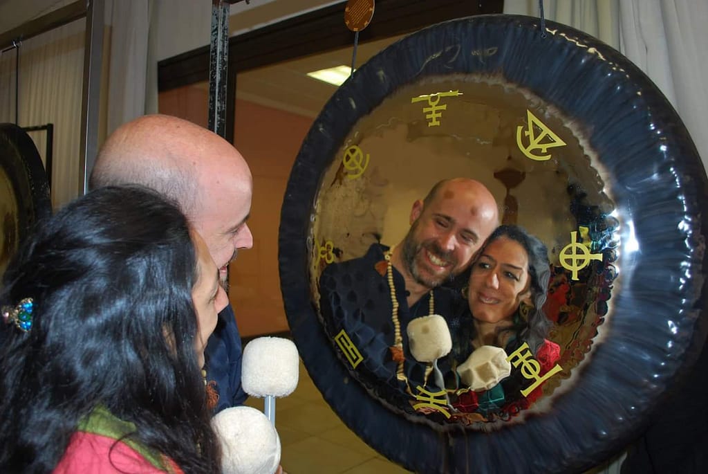 Su cualidad reflectora tanto por delante como por detrás del Gong, hace que sea una herramienta ideal para prácticas de Tantra Blanco por parejas. Esta sesión ofrece una oportunidad de entender y aplicar «la Ley del Espejo» en nuestras relaciones. Sesión ofrecida por Luis&Sara. Si quieres recibir una sesión con tu pareja, o bien individual a través de este GONG, ponte en CONTACTO con nosotros.